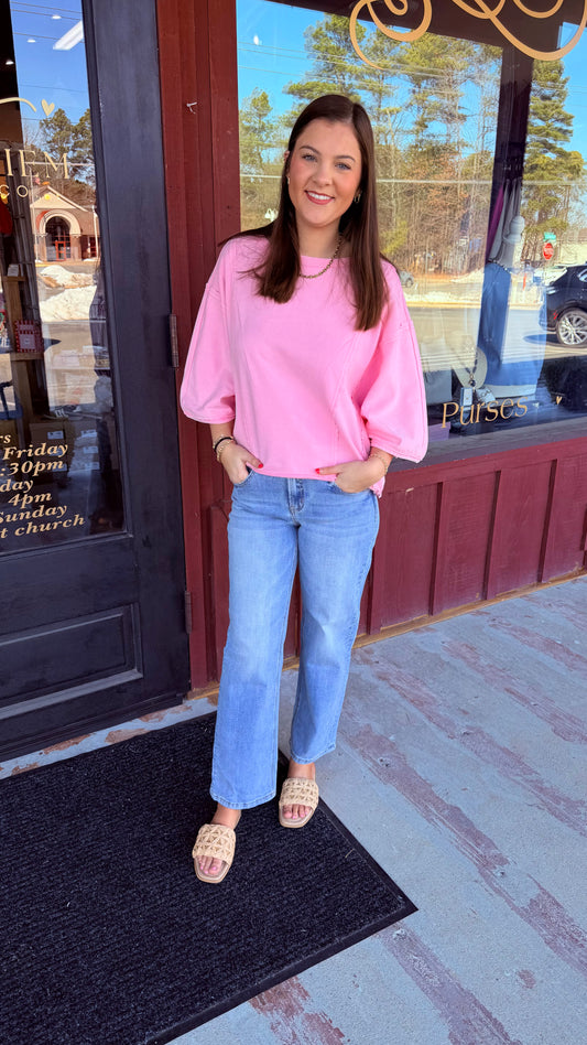"ODDI" Acid Washed Loose Fit Pullover Top