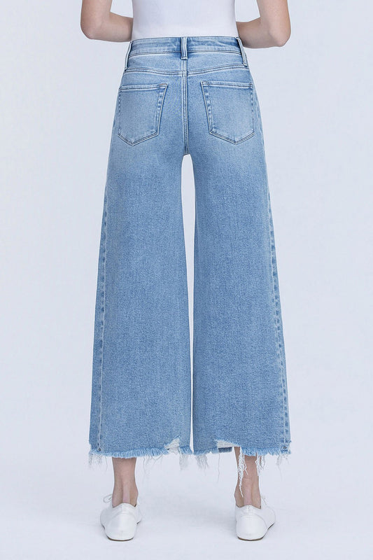 Vervet High Rise Medium Light Side Panel Crop Wide Jeans