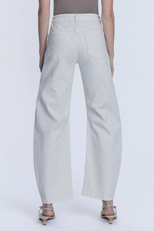 Vervet High Rise Dart Detail Striped Crop Barrel Jeans