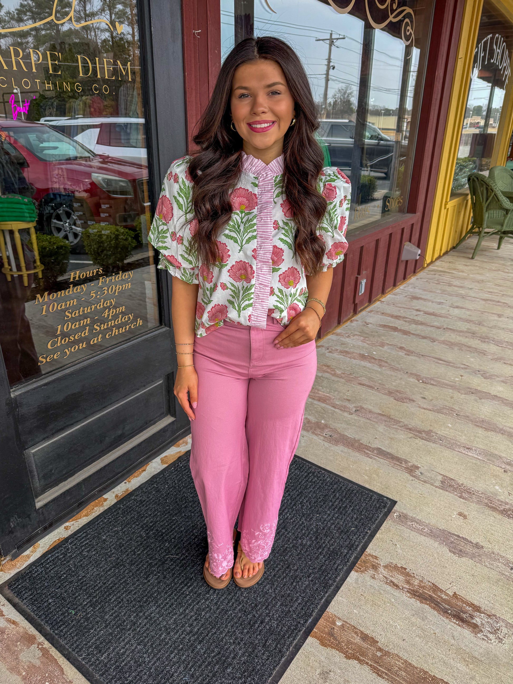 Step into effortless elegance with these pink wide-leg pants that blend comfort with eye-catching style. The scallop-embroidered hem adds a whimsical touch that transforms an everyday staple into something special. Perfect for dressing up or down, these pants offer a flattering silhouette that moves with you. Whether you're heading to brunch or a casual night out, this playful pair brings personality to your wardrobe.